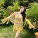 Wholesale Swimsuit split steel support, gathered bikini four piece set, high-end feeling, concealing flesh and slimming, long sleeved sun protection