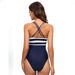 Wholesale Women's sexy color blocked swimsuit with camisole, backless one-piece swimsuit, deep V-stripe swimsuit