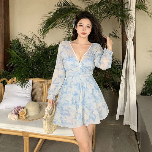 Original price USD$14.51 - Original price USD$16.12Original priceUSD$14.51 - USD$16.12USD$14.51 - USD$16.12Current price USD$14.51Wholesale Sexy bikini one-piece swimsuit chiffon skirt wrapped skirt, shoulder V-neck swimsuit, beach gathering, conservative coverage