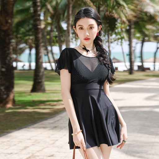 Original price USD$19.28 - Original price USD$20.29Original priceUSD$19.28USD$19.28 - USD$20.29Current price USD$19.28Wholesale New black skirt style one-piece swimsuit, plus size, conservative and high-end, covering the belly and slimming, hot spring swimsuit