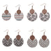 Wholesale Bohemian distressed floral and leaf-printed leather and wood ing pendant earrings double-sided earrings