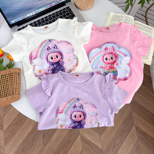 Original price USD$3.75 - Original price USD$4.17Original priceUSD$3.75 - USD$4.17USD$3.75 - USD$4.17Current price USD$3.75Wholesale New summer children' s clothing for girls, double-sided color-changing sequined short-sleeved T-shirt with cartoon bottoming shirt