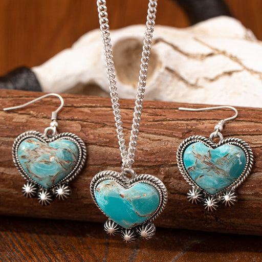Original price USD$2.72 - Original price USD$2.72Original priceUSD$2.72USD$2.72 - USD$2.72Current price USD$2.72Wholesale Vintage turquoise decorative heart-shaped necklace and earrings set
