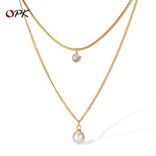Original price USD$1.59 - Original price USD$1.59Original price USD$1.59USD$3.17USD$3.17 - USD$3.17Current price USD$3.17Wholesale Fashion necklace stainless steel temperament commuting pearl zircon double-layer layered collarbone chain