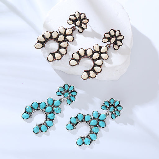 Original price USD$1.14 - Original price USD$1.14Original price USD$1.14USD$2.63USD$2.63 - USD$2.63Current price USD$2.63Wholesale Retro fan-shaped turquoise openwork statement earrings