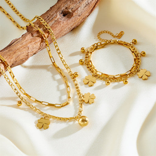 Wholesale Long four-leaf clover pendant women' s double-layer titanium steel necklace