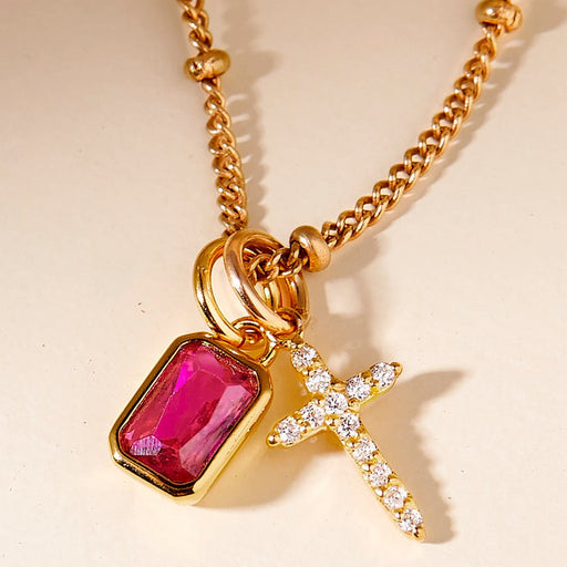 Wholesale Fully encrusted cubic zirconia cross birthstone necklace