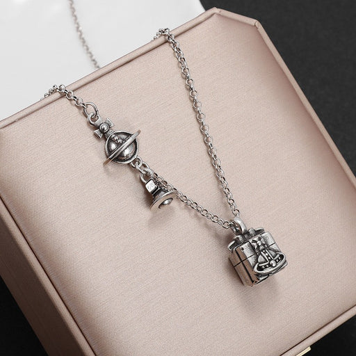 Wholesale Vintage distressed Saturn gift box pendant necklace