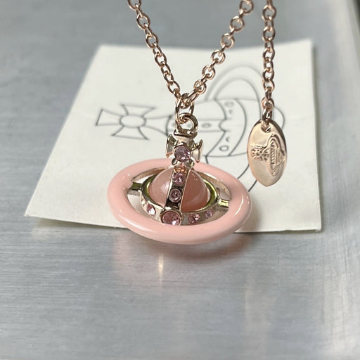 Wholesale Pearl Enamel 3D Saturn Pendant Long Necklace