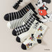 Wholesale Autumn and winter socks for children, 5 pairs of black striped mid tube cotton socks, cartoon embroidered women's socks