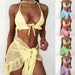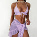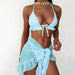 Wholesale New pleated lace up neck hanging mesh bikini solid color three piece set