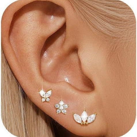 Original price USD$1.37 - Original price USD$1.64Original price USD$1.37USD$2.47 - USD$3.12USD$2.47 - USD$3.12Current price USD$2.47Wholesale Fashionable and classic earrings with 3 diamond studded earrings, paired with a stylish earring set