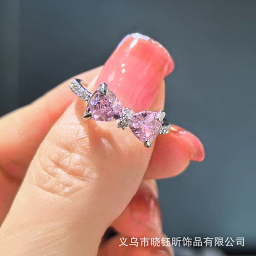 Original price USD$0.54 - Original price USD$0.54Original price USD$0.54USD$1.08USD$1.08 - USD$1.08Current price USD$1.08Wholesale Pink zirconium bow ring, niche design, light luxury, versatile, exquisite adjustment, romantic ring