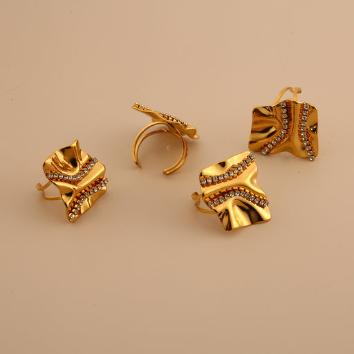 Original price USD$1.88 - Original price USD$1.88Original price USD$1.88USD$3.38 - USD$3.75USD$3.38 - USD$3.75Current price USD$3.38Wholesale New Fashionable Luxury Design Stainless Steel Circular Texture Set with Natural Stone Opening Ring and Earring Set