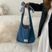 Color: Denim plaid double sided shoulder bag