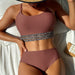 Wholesale Split two-piece women's solid color leopard print swimsuit in stock