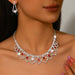 Wholesale Jewelry Wedding Zircon Super Sparkling Water Drop Luxury Necklace Earrings Three Piece Set Wholesale Jewelry