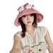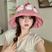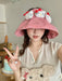 Wholesale Leisure red checkered basin hat with large brim for sun protection, cute cartoon fisherman hat
