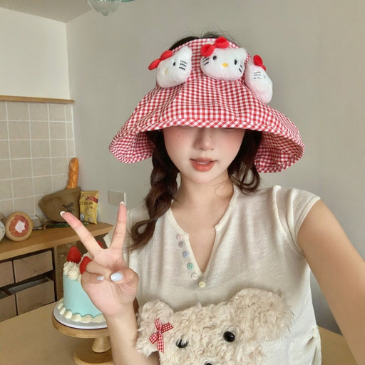 Original price USD$2.50 - Original price USD$2.50Original price USD$2.50USD$5.00USD$5.00 - USD$5.00Current price USD$5.00Wholesale Leisure red checkered basin hat with large brim for sun protection, cute cartoon fisherman hat