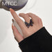 Wholesale Purple diamond black butterfly ring with unique and niche design, light luxury, open mouth, index finger, female