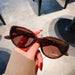 Wholesale Retro tea brown oval sunglasses for women, high-end sense, square round face sunglasses, polarized