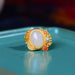 Wholesale Ring with palace-style setting featuring a peace talisman and leaf motif