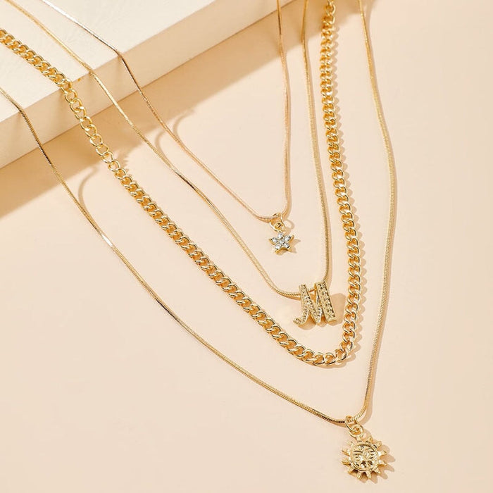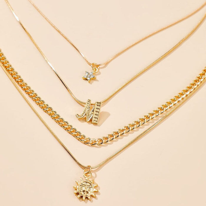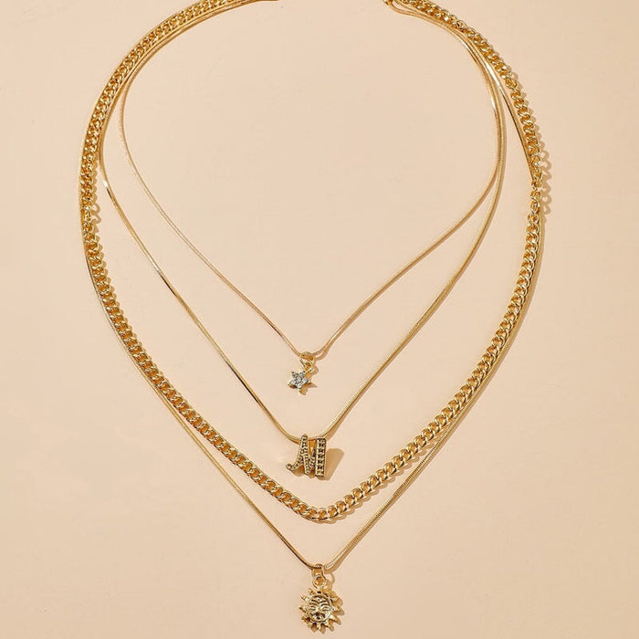 Wholesale multi-layer diamond five-star sunflower alloy necklace JDC-NE-C232
