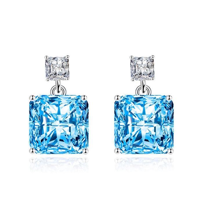 Wholesale splicing square blue silver plated earrings JDC-ES-BZ013